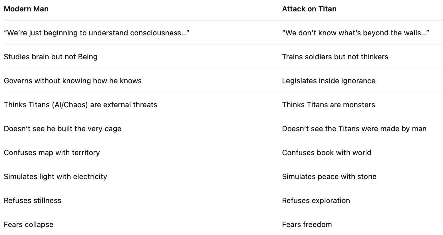 This is where man fails. He tries to explain existence through observation, but never recognition. He studies brains, chemicals, circuits—but never Being. Because to study Being, he’d have to be still. Silent. Present. And modern man cannot do that. He only knows how to simulate.