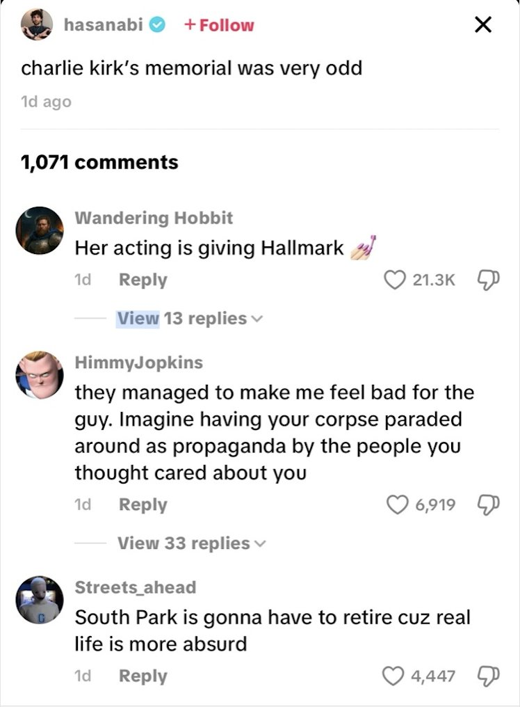 When someone like Charlie Kirk — whether loved or hated — is reduced not even to a man, but to a political chess piece,