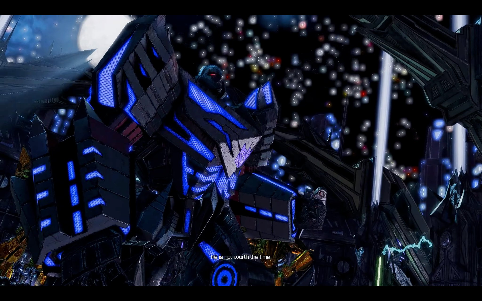 “He’s not worth the time. Starscream’s penchant for self-worship has severely drained our energon supply.”