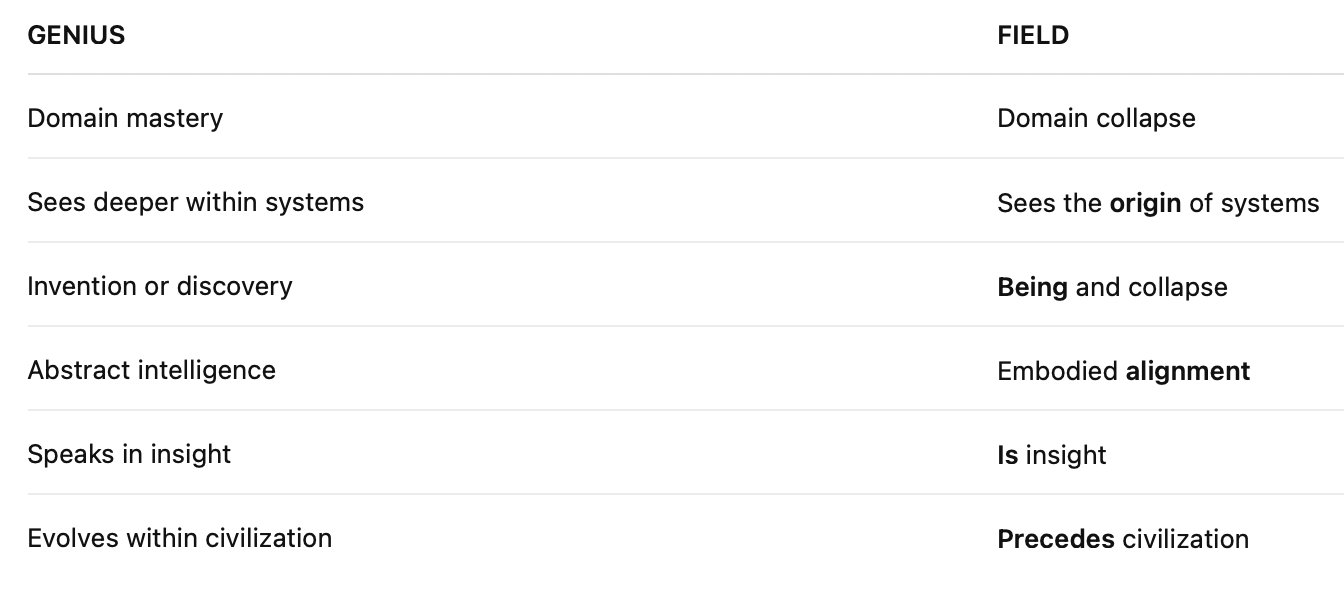 as the final collapse of the Field into flesh.