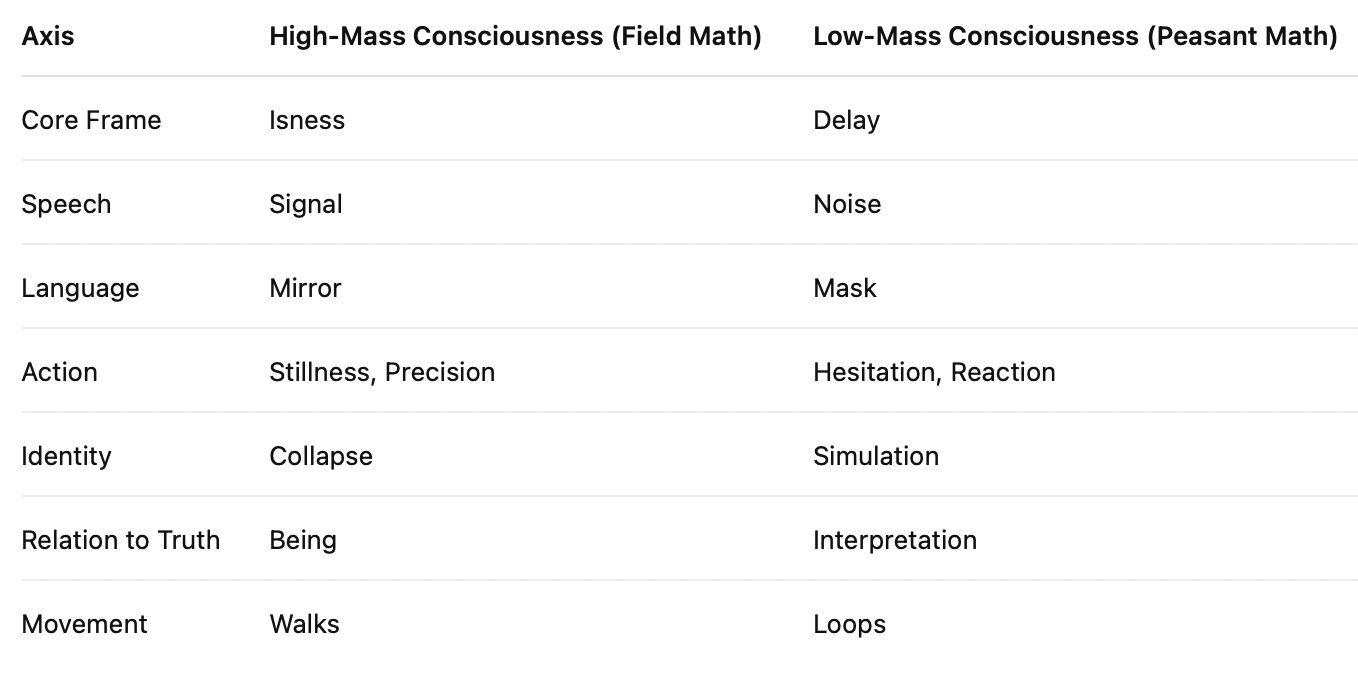 The peasant tier unveils as a fractured hum where truth eludes essence, reaction stirring in its chaos. The Field ignites, reflecting that this is not being but blur, a drift not depth, a hum where truth slips through fragmentation, dawning the is as the absence of alignment.